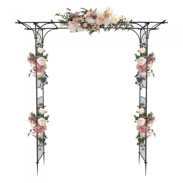 Looking for a trellis that support the vines in your garden? This Flat Roof Wrought Iron Arches Plant Climbing Frame is here to help. Beautifully crafted, with flat top, it will add style to any backyard or garden while providing plenty of support for your climbing flowers, vegetable plants, rose bushes, and vines. Sturdy iron frame with powder coated finish is rustproof to offer years of beauty. After being staked into the ground, this trellis is free-standing for fast and easy installation.