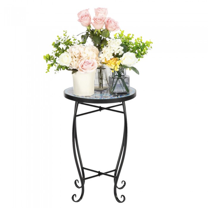 This is an adorable accent table for your patio, porch, balcony etc. This series of mosaic tables all have beautiful colors and great texture, great for either indoor and outdoor use,especially for any beach theme home decor or use by a nice clean pool. It has a smart size to be placed at any small spaces like on the corner of your porch. It wont take much space. The metal construction with mosaic glass table top make this table sturdy and attractive. This accent table can be also used for your outdoor plants to beautify your space. You can also use it your living room. It is easy to move around and can be used as an accent table for your dinner parties. This table is just versatile, pretty and sturdy.